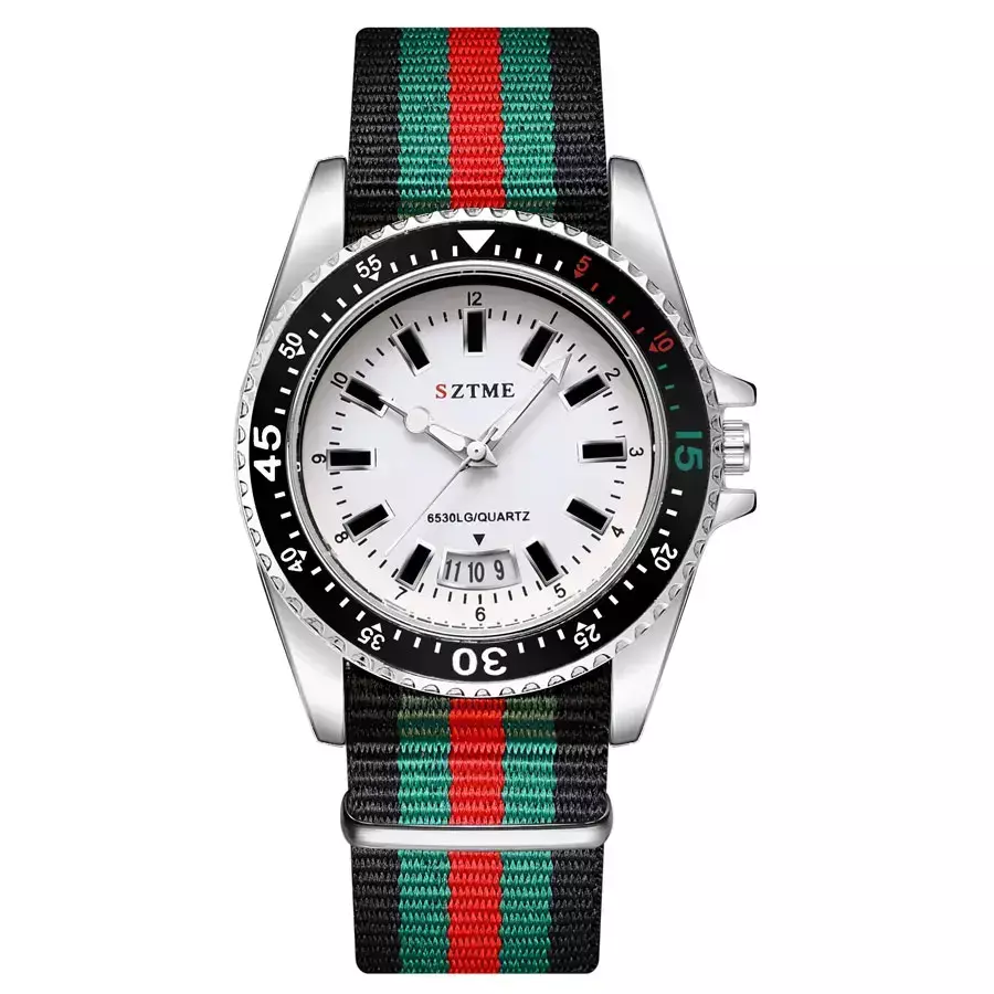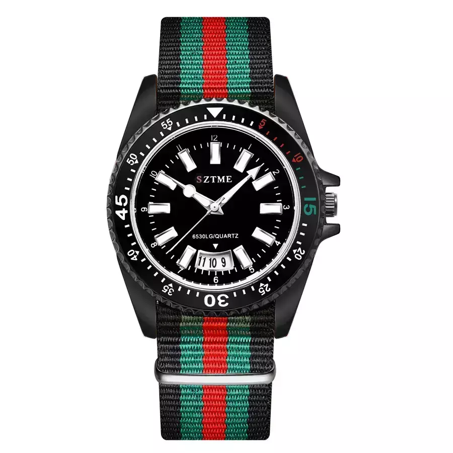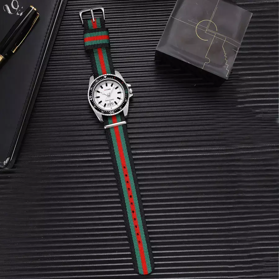 Relógio de quartzo com design sofisticado e pulseira de nylon resistente. Ideal para homens e mulheres de negócios que buscam um acessório elegante e funcional, com a praticidade da luz noturna.